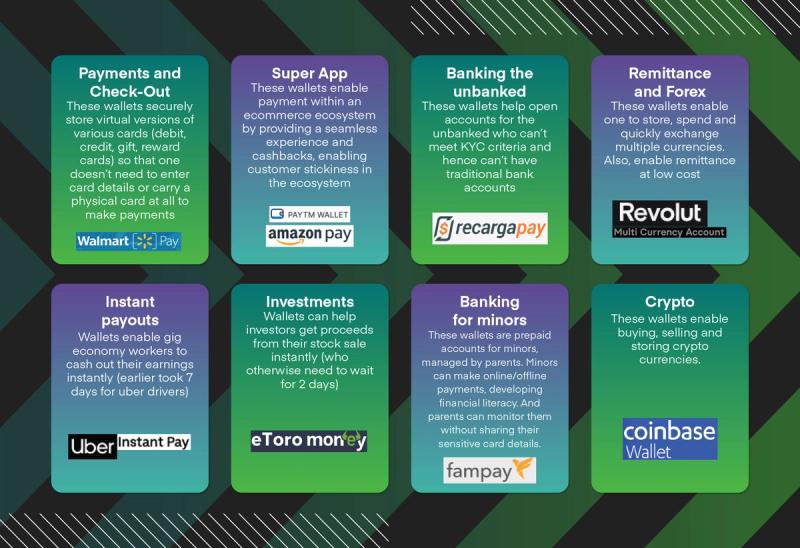 This dual value for both consumers and businesses has led to widespread adoption of wallets across industries and functions, creating innovative use cases. The top use cases, which form the majority of wallet implementations, include: